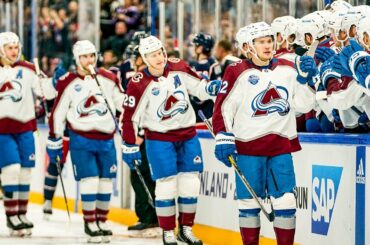 L’attaquant de l’Avalanche du Colorado Nathan MacKinnon nourrit Marty Necas pour le premier but des Avs de la saison régulière…