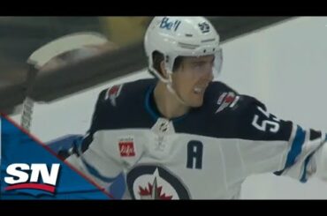 Regardez l’attaquant des Jets de Winnipeg Blake Wheeler préparer le but d’assurance de son coéquipier Mason Appleton en troisième période…