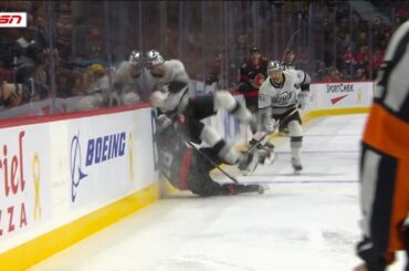 Mené 3-2 dans les dernières secondes de la 3e période, l’attaquant des Flyers Garnett Hathaway rate le but dans un…