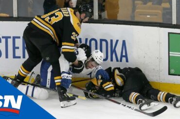 Matt Grzelcyk a inscrit le but décisif avec 1:16 à faire pour mener les Bruins de Boston devant leur rival…