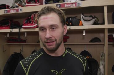 L’attaquant des Panthers Matthew Tkachuk s’adresse aux médias après la victoire 3-1 des Panthers contre les Maple Leafs de Toronto…