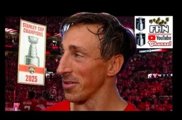 L’attaquant des Panthers de la Floride, Brad Marchand, rencontre les médias après avoir ouvert la saison 2025-26 de la LNH…