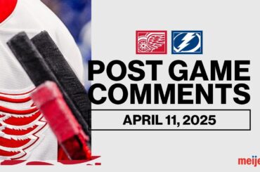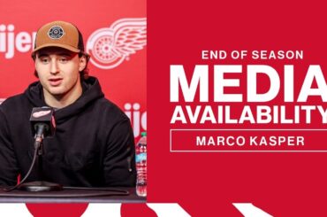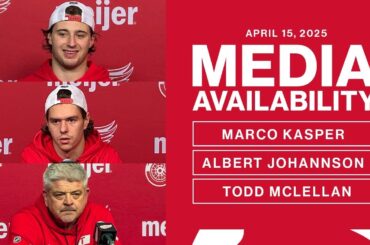 Marco Kasper, Albert Johansson et Todd McLellan parlent avec les médias après l’entraînement de Détroit le mardi 15 avril 2025.