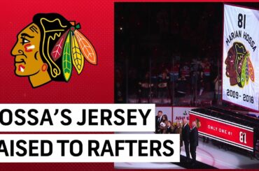 Marian Hossa est le 8e joueur des Blackhawks à voir son maillot retiré par la franchise. Regardez la bannière de…