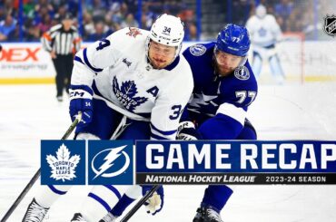 L’attaquant des Maple Leafs de Toronto John Tavares remporte la victoire de l’équipe en guidant une passe de son coéquipier…