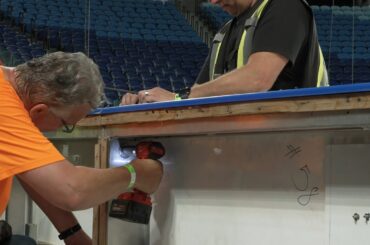 Le directeur principal des opérations hockey de la LNH, Derek King, et le vice-président des opérations des sites et des…