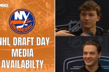 Le prospect numéro un Matthew Schaefer et le natif de Long Island, James Hagen, parlent avec les médias un jour…