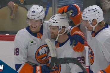 Regardez la recrue des Islanders de New York Matthew Schaefer récolter son premier point dans la LNH avec une passe…