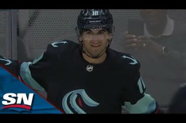 Regardez l’attaquant du Seattle Kraken Matty Beniers marquer son 18e but et son 38e point en tant que recrue en…