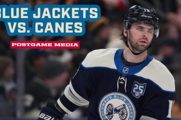 Elvis Merzlikins, Erik Gudbranson, Cole Sillinger et l’entraîneur-chef Rick Bowness s’adressent aux médias après le match. Suivez le #CBJ sur…