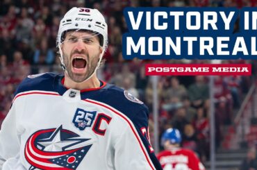 Boone Jenner, Charlie Coyle et l’entraîneur-chef Rick Bowness parlent aux médias après la victoire de 5-2 contre Montréal ce soir…