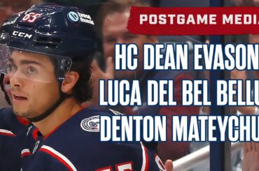 Elvis Merzlikins, Ivan Provorov, Damon Severson et l’entraîneur-chef Dean Evason parlent aux médias après la victoire 2-0 de ce soir…