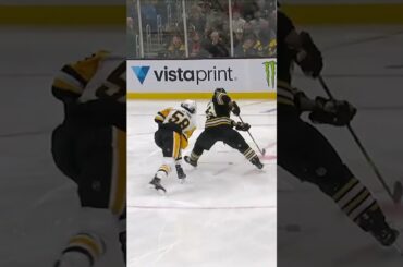 L’attaquant des Bruins de Boston Brad Marchand s’appuie sur le défenseur Kris Letang pour marquer un joli but en désavantage…