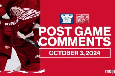 Cam Talbot, Michael Rasmussen et Derek Lalonde parlent avec les médias après le match préparatoire des Red Wings contre les…