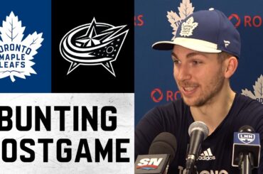 Michael Bunting s’entretient avec les médias après la victoire des Leafs 5-4 contre les Blue Jackets lundi. ABONNEZ-VOUS : https://tml.hockey/3FvgtoG…