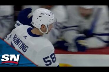 Joseph Woll a effectué 29 arrêts tandis que Michael Bunting a marqué deux fois, lui donnant 18 buts cette saison,…