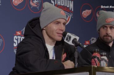 Dylan Larkin, Patrick Kane et l’entraîneur-chef des Red Wings de Detroit, Todd McLellan, ont pris la parole lors d’une conférence…
