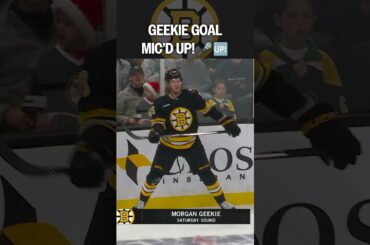 L’attaquant des Bruins de Boston Morgan Geekie est au micro pour une tentative de tir ratée, mais il se recentre…