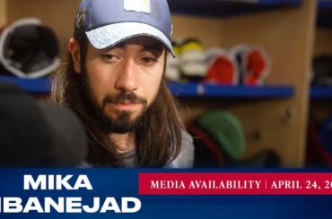L’attaquant des Rangers de New York Mika Zibanejad répond aux questions des médias avant le match du 24 avril contre…