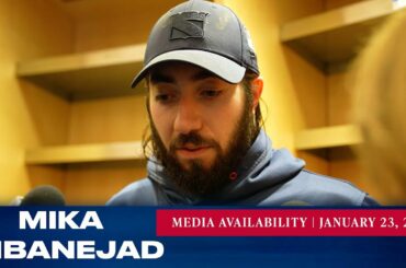 L’attaquant des Rangers de New York Mika Zibanejad répond aux questions des médias après le match du 23 janvier contre…