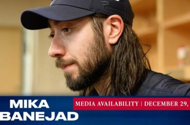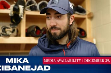 L’attaquant des Rangers de New York Mika Zibanejad répond aux questions des médias avant le match du 29 décembre contre…