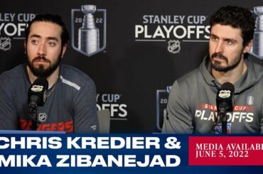 Les attaquants des Rangers de New York Chris Kreider et Mika Zibanejad répondent aux questions des médias après le match…