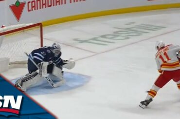 Regardez l’attaquant des Flames de Calgary Mikael Backlund montrer ses mains douces lors d’une échappée pour marquer cinq trous sur…