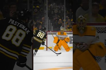 L’attaquant des Bruins de Boston David Pastrnak montre une sortie unique sur une occasion de tir de pénalité contre le…