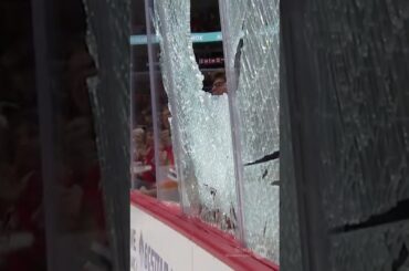 Chaos total à Calgary 🤯🏒 Lors d’un match Kraken vs Flames, une mise en échec massive brise la vitre et…
