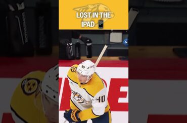L’attaquant des Predators Fedor Svechkov est un peu trop occupé par ses devoirs sur iPad pendant l’entracte et doit patiner…
