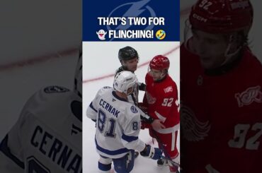 Le défenseur du Lightning de Tampa Bay Erik Cernak joue à des jeux d’esprit avec l’attaquant des Red Wings de…