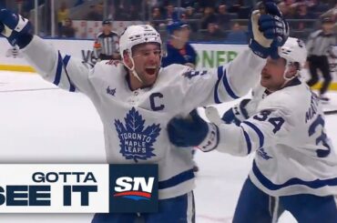Regardez le capitaine des Maple Leafs de Toronto, John Tavares, aider à établir le but égalisateur de Morgan Rielly à…