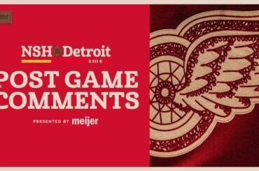 Lucas Raymond, Moritz Seider et Todd McLellan s’entretiennent avec les médias après le match de Détroit contre les Predators de…