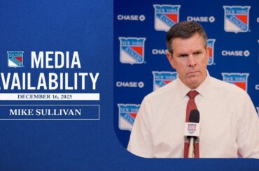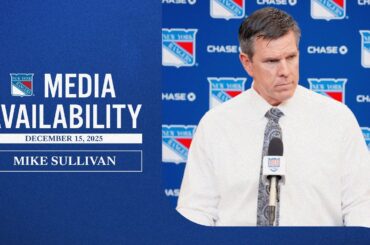 L’entraîneur-chef des Rangers de New York, Mike Sullivan, s’entretient avec les médias à la suite de la défaite de l’équipe…
