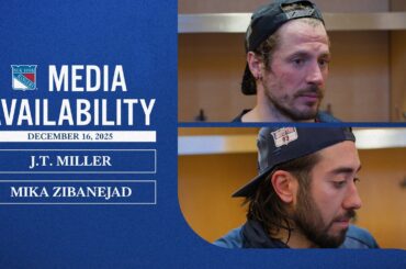 Le capitaine des Rangers de New York JT Miller et l’attaquant Mika Zibanejad parlent avec les médias après la défaite…