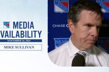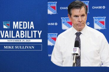 L’entraîneur-chef des Rangers de New York, Mike Sullivan, discute de la défense et des efforts de l’équipe après la victoire…