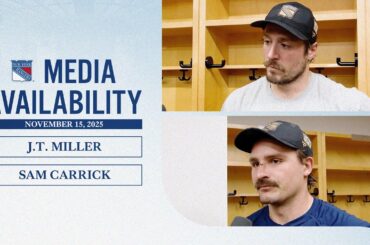 Le capitaine des Rangers de New York, JT Miller, discute de son but en tirs de barrage et l’attaquant Sam…
