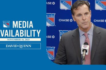 L’entraîneur adjoint des Rangers de New York, David Quinn, s’entretient avec les médias après la défaite de l’équipe contre les…