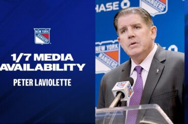 L’entraîneur-chef des Rangers de New York, Peter Laviolette, s’entretient avec les médias après la défaite de l’équipe contre les Stars…