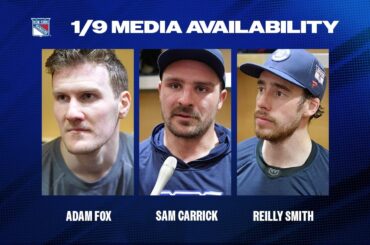 Le défenseur des Rangers de New York Adam Fox discute de la confiance de l’équipe, l’attaquant Sam Carrick discute de…