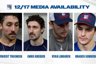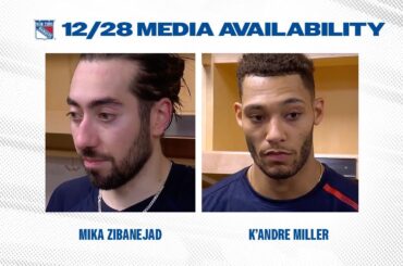 L’attaquant des Rangers de New York Mika Zibanejad et le défenseur K’Andre Miller s’entretiennent avec les médias après la défaite…