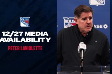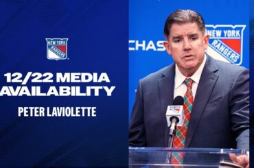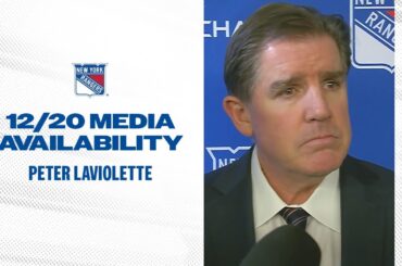 L’entraîneur-chef des Rangers de New York, Peter Laviolette, discute des lignes de l’équipe et du jeu des équipes spéciales après…