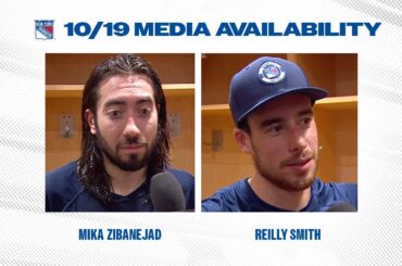 L’attaquant des Rangers de New York Mika Zibanejad discute de sa passe décisive sur le but de Chris Kreider et…