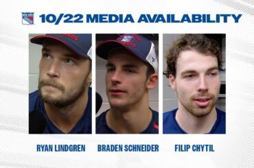 Le défenseur des Rangers de New York Ryan Lindgren discute de la profondeur de l’équipe, le défenseur Braden Schneider discute…