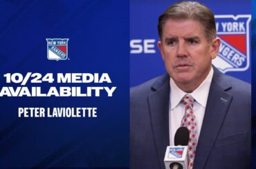 L’entraîneur-chef des Rangers de New York, Peter Laviolette, discute de la profondeur de l’équipe et de la défense de l’équipe…