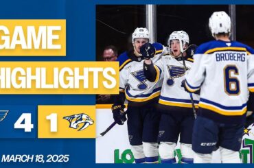 Faits saillants d’une victoire 4-1 St. Louis Blues contre les prédateurs de Nashville le 18 mars 2025, qui comprenait deux…