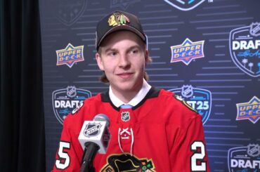 In @Blackhawks de Chicago Nathan Behm | 2025 Disponibilité du projet de la LNH juin 28, 2025 L’attaquant de Kamloops Blazers, Nathan Behm, rencontre les médias après avoir été sélectionné par les Blackhawks de Chicago avec le…
