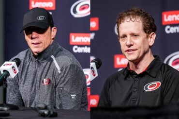 L’entraîneur-chef Rod Brind’amour et le directeur général Eric Tulsky ont rencontré les médias à la fin de la saison des…