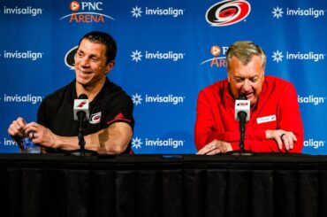 Rod Brind’Amour et Don Waddell rencontrent les médias à la fin de la saison 2023-24 des Hurricanes de la Caroline.…