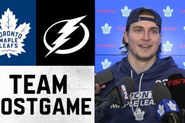 L’entraîneur-chef et les joueurs s’entretiennent avec les médias après la victoire de 5-3 des Leafs contre le Lightning de Tampa…